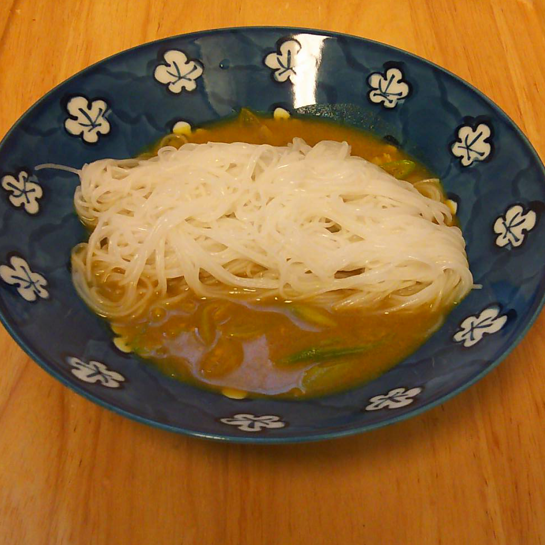 カレーうどんのフレークを使って 冷やしカレーそうめんを作ってみました♪
