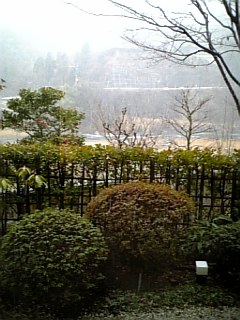 残念ながらぼたん雪がふりはじめましたが 思い切って露天風呂にゆっくりと入ってきました。外はもちろん寒いのですが ゆっくり入っていると 芯から温まりまわりの景色を楽しむ余裕もできました。