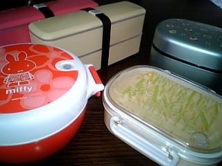 新しく仲間になったお弁当箱は 写真左下のミッフィーのお弁当箱です。