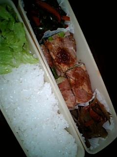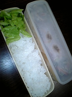 もう一つの段には 温めたパックごはんと 空いた所にレタスを詰めました。