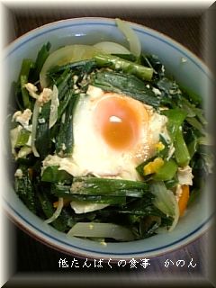 最近野菜が少なめだったので ニラを半分つかって 丼にしました。
