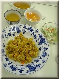 メニューは ドライカレー・ポテトサラダ・スープ・フルーツ寒天でした。