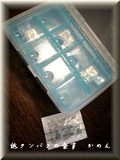 現在 決まって飲むお薬は 朝2錠+1包 夕1錠+1包なので 写真にようなプラケースで収まりました^^