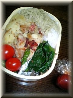 何も考えずに冷凍したので 上手くお弁当箱に入らず・・・・(^_^;)