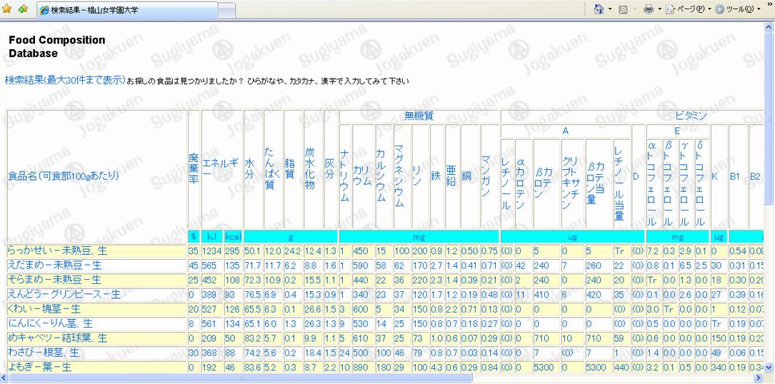 他の食品群で自分が思う条件を入れて検索してみると 自分が思っている結果と違う場合が出てきてた時は勉強になり 思っていた通りなら確認になりますよね^^