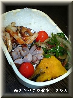 今日の通院弁当は エリンギのケチャップ炒め・ピーマンとタマネギのおかか炒め・ウィンナー・かぼちゃ・ミニトマトです。いつも勝手にお弁当を広げて食べているテーブルが日の当たる場所に移動していて ちょっと気分的には明るい場所で食事出来て嬉しかったです^^