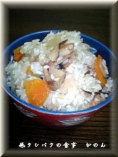 おかまに70gの米と30gのマンナンライスといつも通りの水(私の場合は100g)とクッキングサプリFeとこの混ぜれば中華おこわ風ご飯の素を入れ 早炊きスイッチをポン!