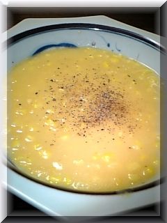 作り方は 鍋にマーガリンを入れて火をかけ解けてきたら水と缶のコーンを入れて温める。ほどよく温まってきたら調味料と水でとろみを調整して出来上がり。
