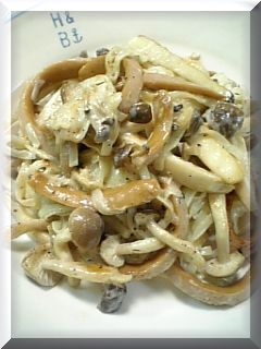 - きのこが少ししんなりしてきたら 白ワインを加えてざっと炒め 生クリームを入れる。