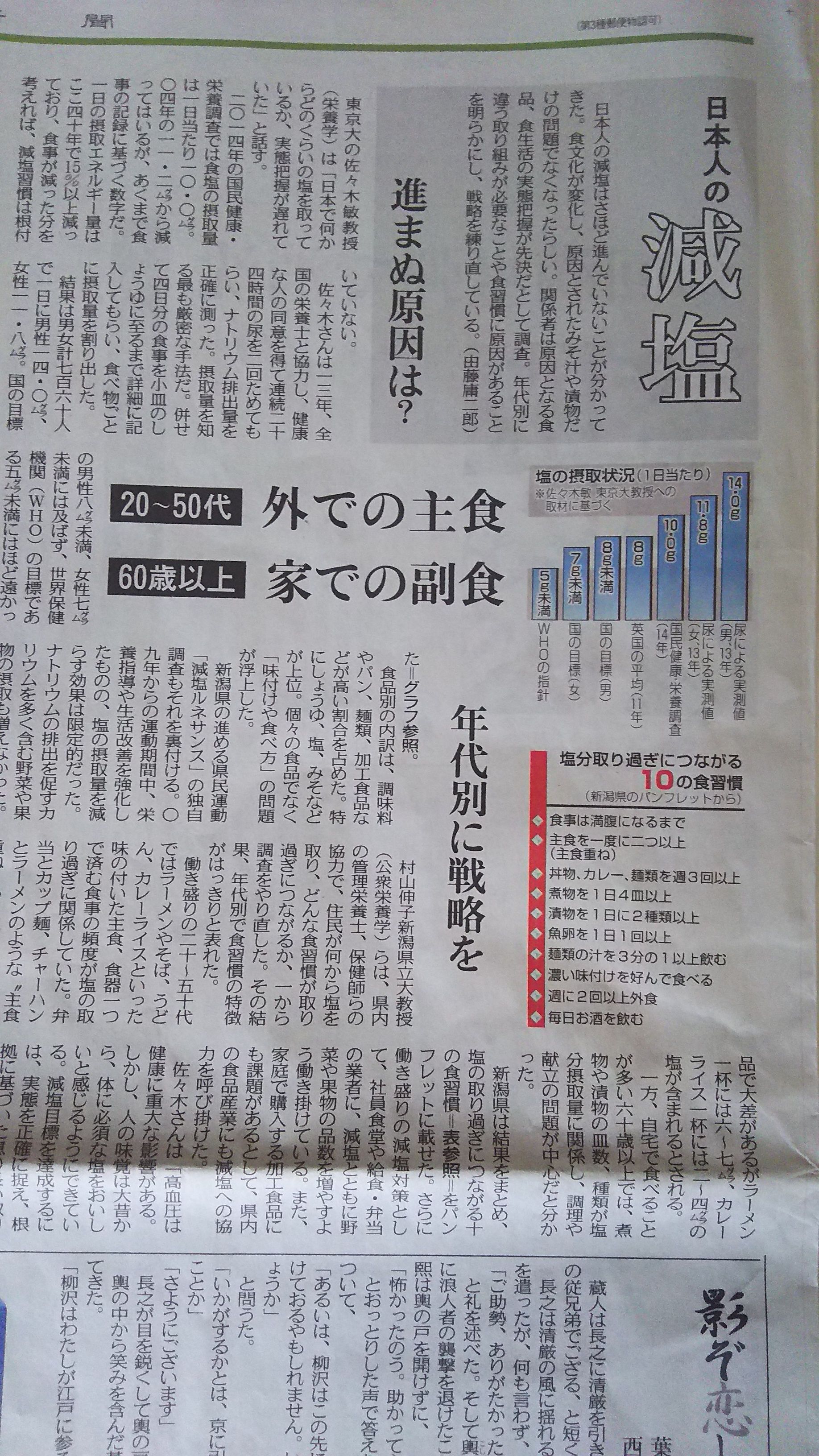 『減塩』について 新聞に特集されておりました。