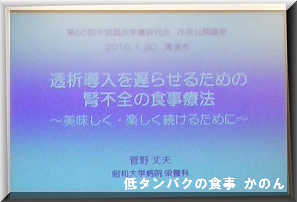 1月30日に「透析導入を遅らせるための腎不全の食事療法-美味しく・楽しく続けるために-」に参加してまいりました。