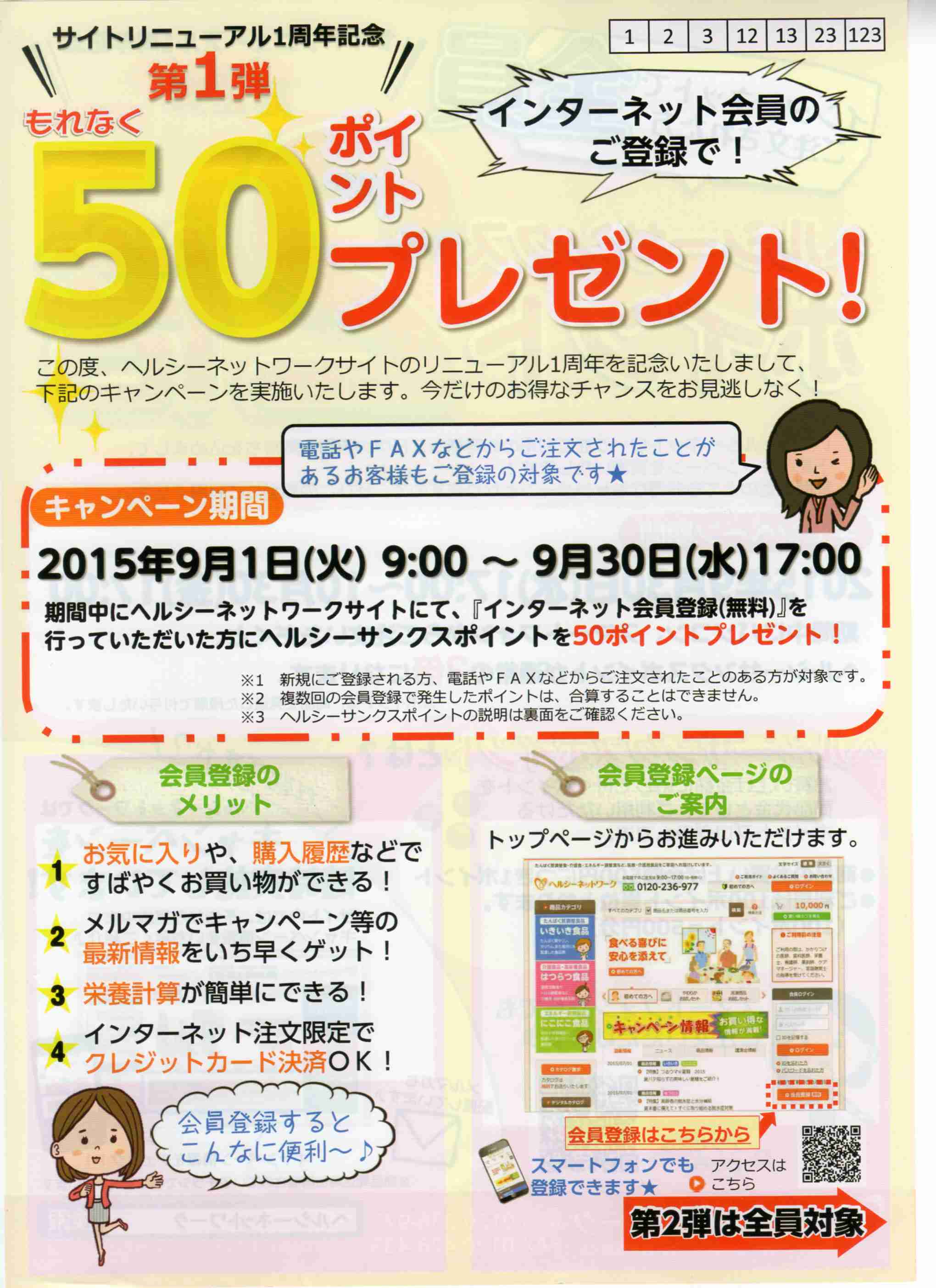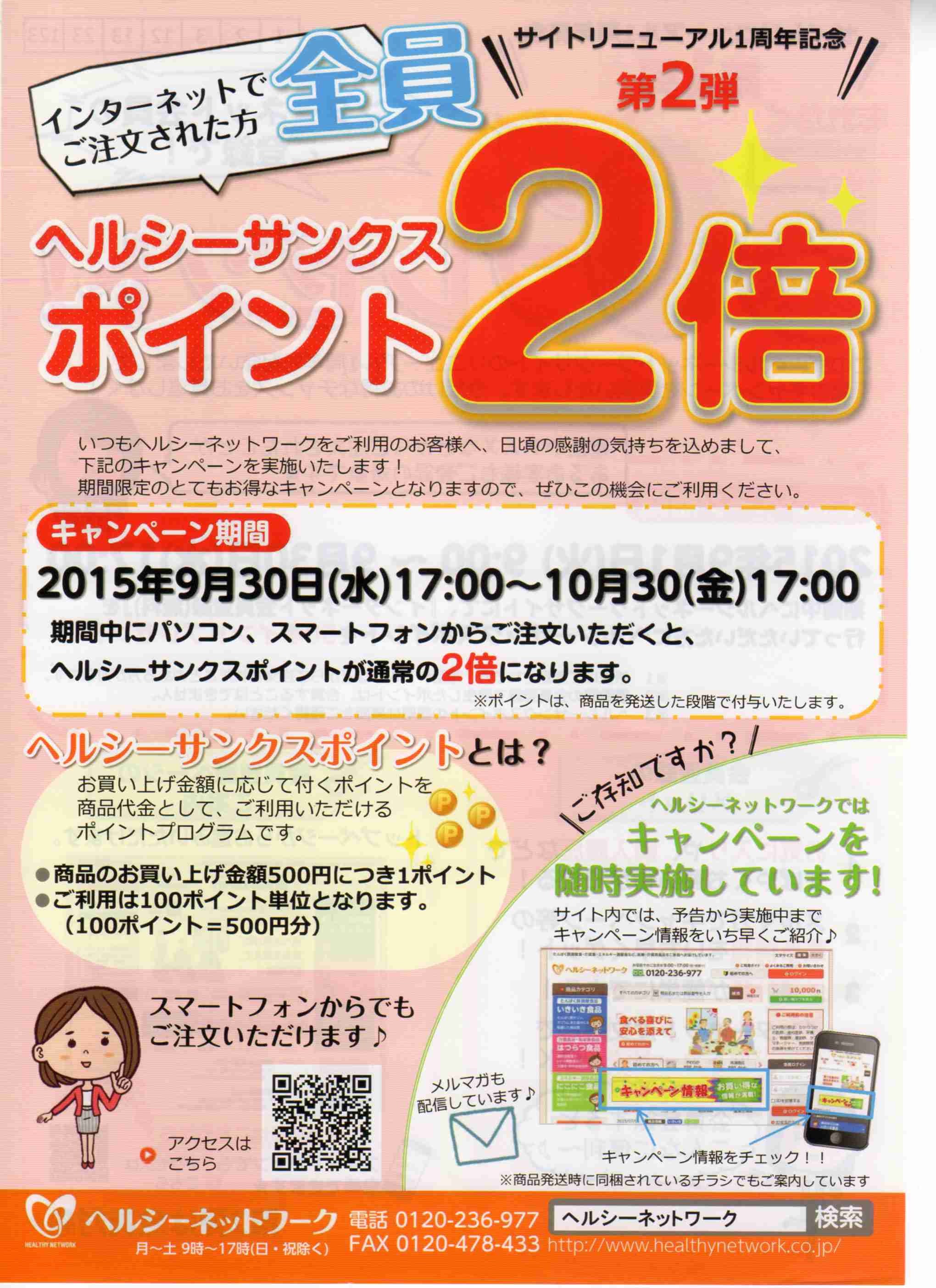 ヘルシーネットワークさんが 9月30日までと その後の2段階でイベントを開催されてます♪