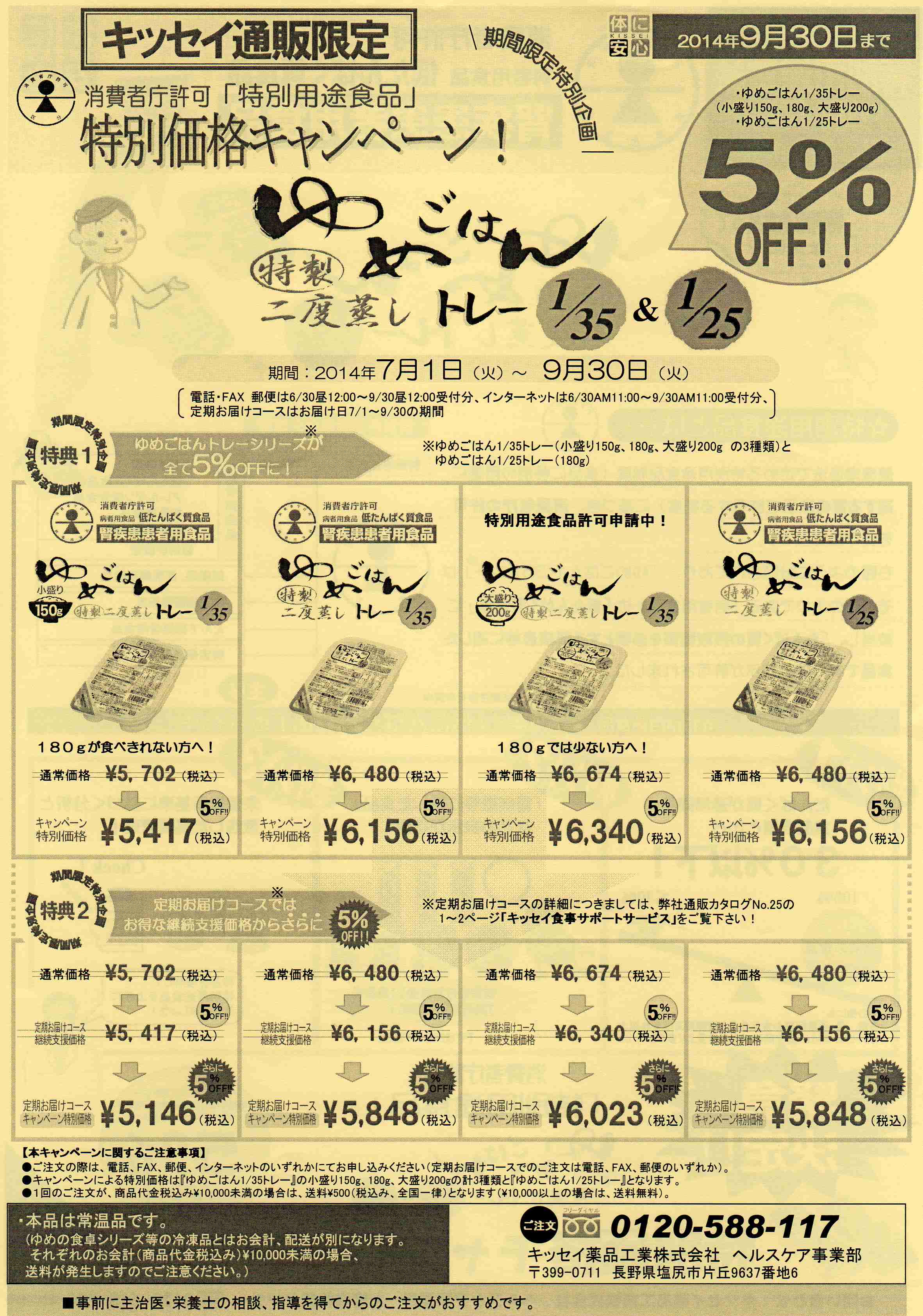 キッセイ通販限定で 7/1~9/30の間 ゆめごはんが5%OFFで販売されるそうです!