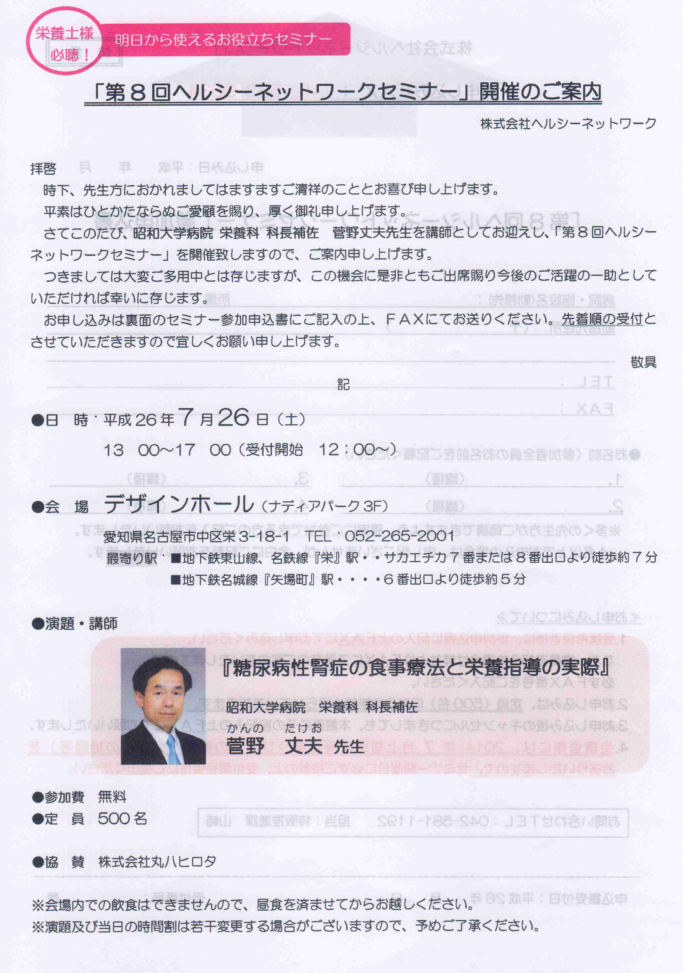 ヘルシーフードさんの 紹介URL http://www.healthy-food.co.jp/seminar/hold.php#date20140530185835