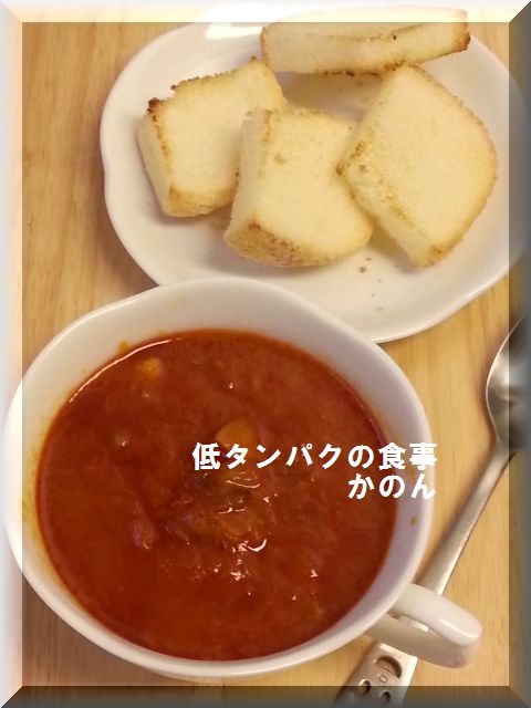 | とまとチリスープとパン | 438.6Kcal | 6.2g | 0.8g |