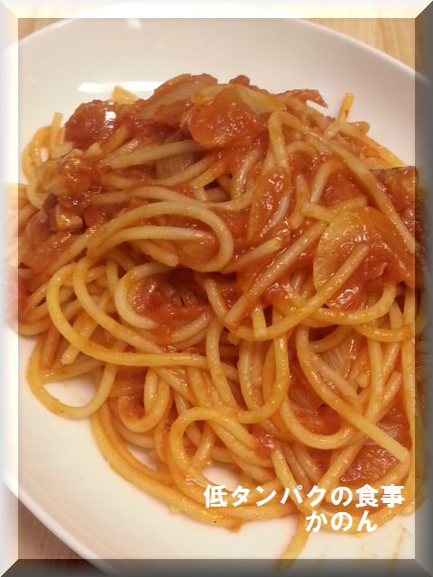 ・トマトソースパスタ 前回使った KAGOMEの基本のトマトソースの残りを使いました |