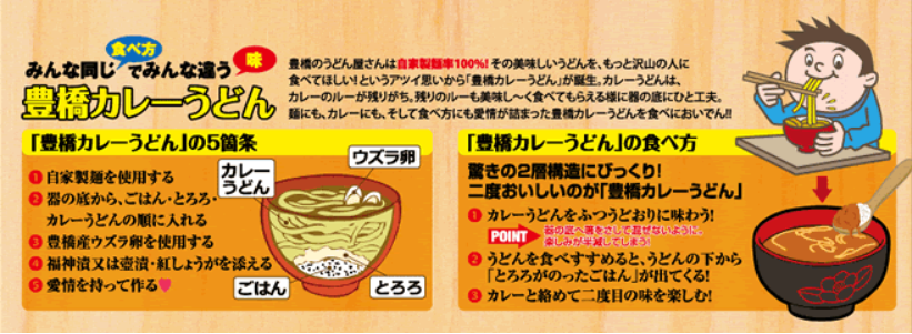 豊橋カレーうどん: http://www.honokuni.or.jp/toyohashi/info/000015.html