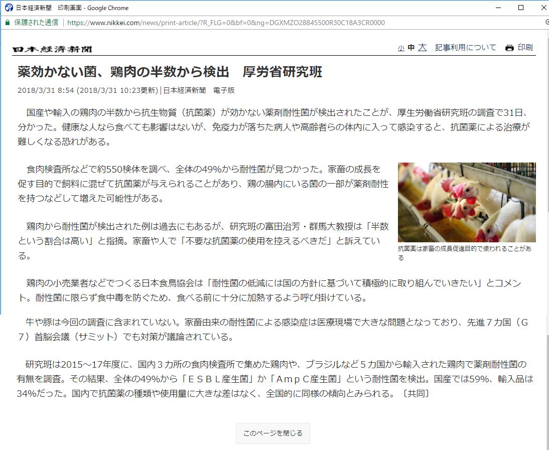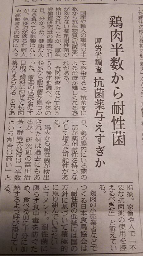 今日の夕刊に掲載されていた 鶏肉の記事を読まれましたでしょうか?