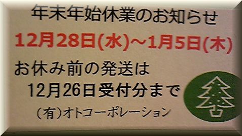 年末年始休業のお知らせが 箱の中にはいっておりました。
