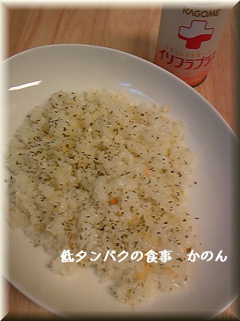 そして この金-土曜日と外食続きでしたので 今日は 超たんぱく質控え目ガーリックチャーハンです。