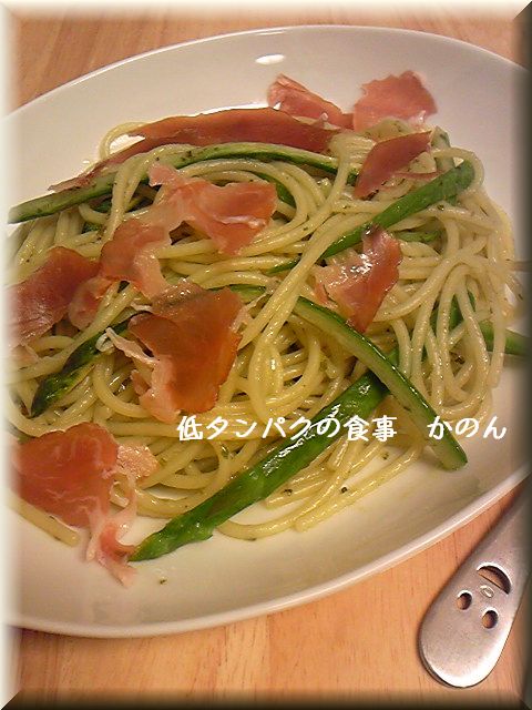 | 生ハムとアスパラガスのバジルパスタ | 557kcal | 4.5g | 1.7g |