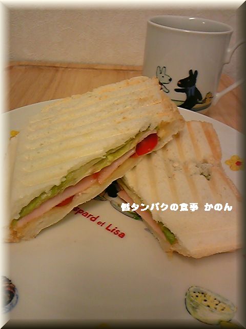 昨日 ホームベーカリーで焼いた低タンパクパンで ホットサンドを作りました。