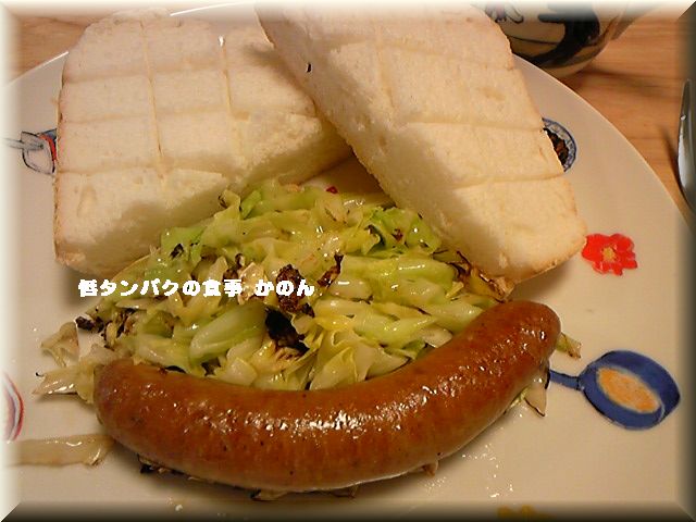 食パンは軽く温めて 私の大好きなキャベツ炒めとセットにしました♪