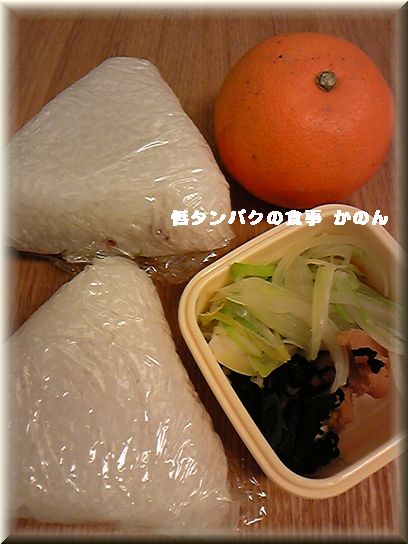 お味噌汁に乾燥わかめを使って海藻類を食べるので おにぎりの海苔はやめちゃいました。