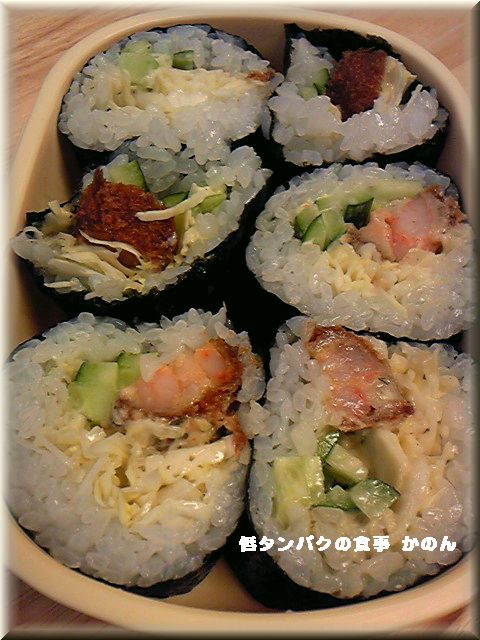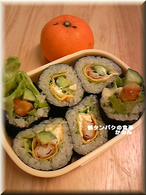 昨日も登場した 冷凍食品を使って楽々巻きずしです(^_^;)しかもカロリーもあるよっ