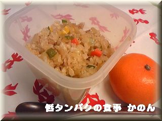 この前 ツナ缶を開けたので 今日はツナを25g使ってチャーハン弁当です。