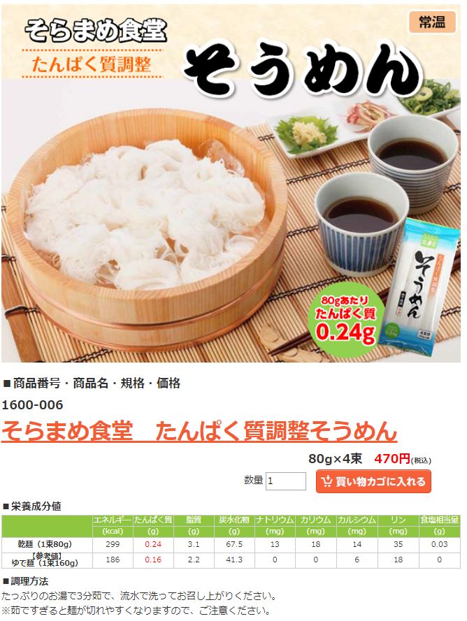 パソコンのソフトを使って管理しているのですが そのソフトへ「そらまめ食堂 たんぱく質調整そうめん」の登録が誤っておりました。