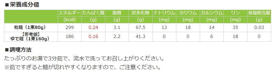 | アプロテン たんぱく調整スパゲティタイプ | 100 | 357 | 0.4 | 0 |