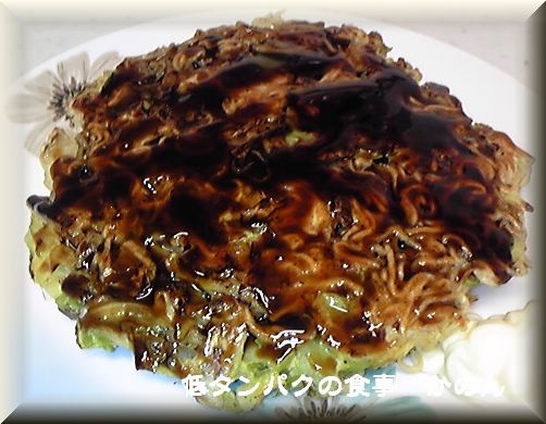 簡単に言うと 焼きそばをたまごで固めてお好み焼きみたいにした 焼きそばです。