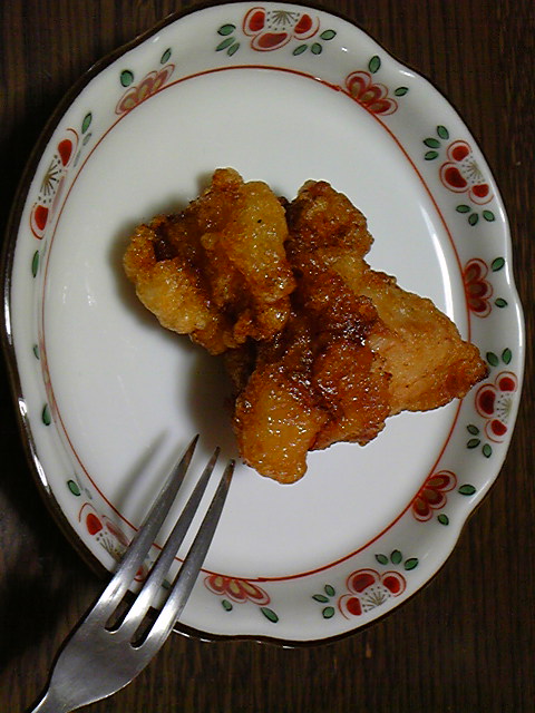 匂いに負けて 大好物の鳥の唐揚げを 1つぱくり(;^_^A