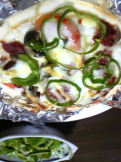 今晩は しめじとトマトのピザでした~