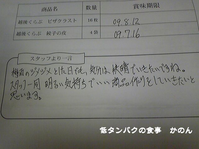 荷物と同封されていた 賞味期限が書いてある用紙にも 手書きでお手紙が書いてあり 元気に頑張っていらしゃる様子が伝わってきました。