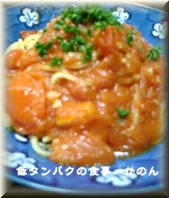 ・トマトソースのパスタ 携帯のカメラなのにピンボケさせるなんて 私ってすごいスキル持ってますよねっσ(´x`o) |