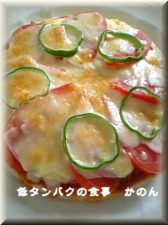 ピザというと トマトソースにチーズが定番ですが このたんぱく質ならホワイトソースやマヨ系もいけそう♪