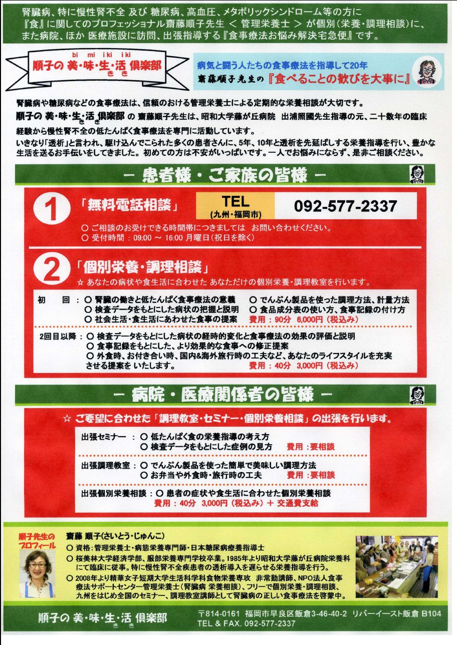 1月31日に開催されました調理実習の先生 斎藤順子先生が 福岡にて食事療法お悩み解決宅急便『順子の美・味・生き・活き 倶楽部』を始められました