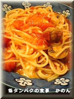 ・モッツァレラとトマトのパスタ 完熟のトマトを丸ごと1個使って 美味しい♪ |