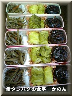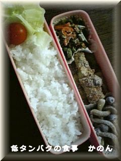 お弁当は 休日におかずを冷凍して持っていく予定なんですが お弁当のごはんを詰めながら 朝食も早くできて たんぱく質を5g以下・・・・・ よくばって 3g程度で エネルギーが400Kcalで 私の好みの朝食パターンも考えているところです。