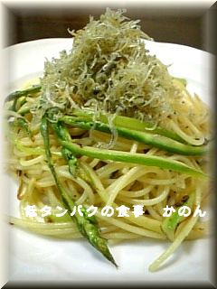 夕飯のしらすとアスパラガスのパスタは きょうの料理で紹介されていたレシピのアレンジです。